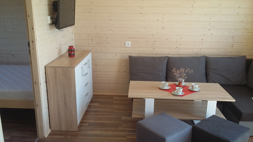 W salonie znajduje się rozkładany wypoczynek, radio oraz TV.