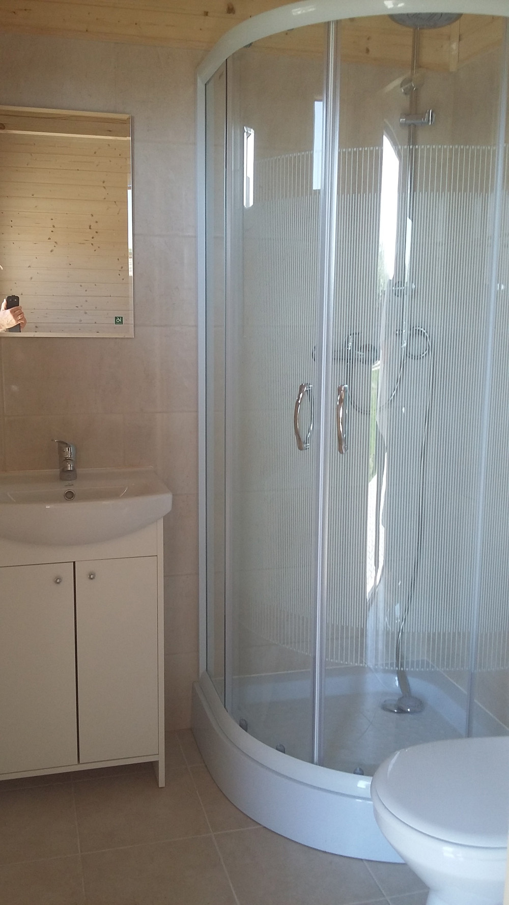 W domkach są w pełni wyposażone łazienki.