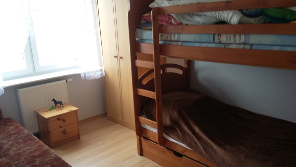 Sypialnia z łóżkami jednoosobowymi, wyposażona w pościele i poszewki.