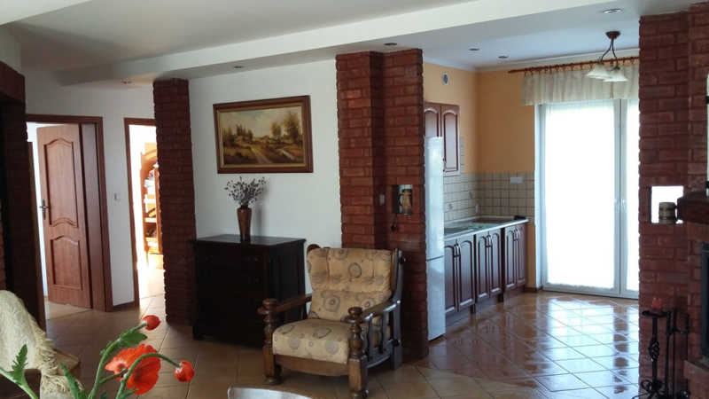 W domu znajduje się lodówka, płyta elektryczna, czajnik elektryczny, akcesoria kuchenne.